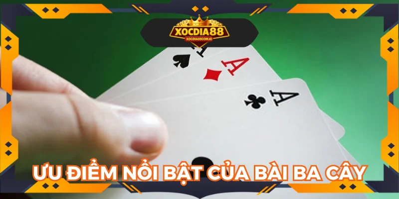 • Nhịp chơi nhanh, kịch tính: Khác với các game như poker, baccarat, bài ba cây không đòi hỏi chiến thuật hay thời gian suy nghĩ. Mỗi ván ba cây chỉ diễn ra trong khoảng 1 phút, thậm chí, đưa đến 1 phút. Chính sự nhanh gọn này khiến người chơi luôn cảm thấy hứng thú.